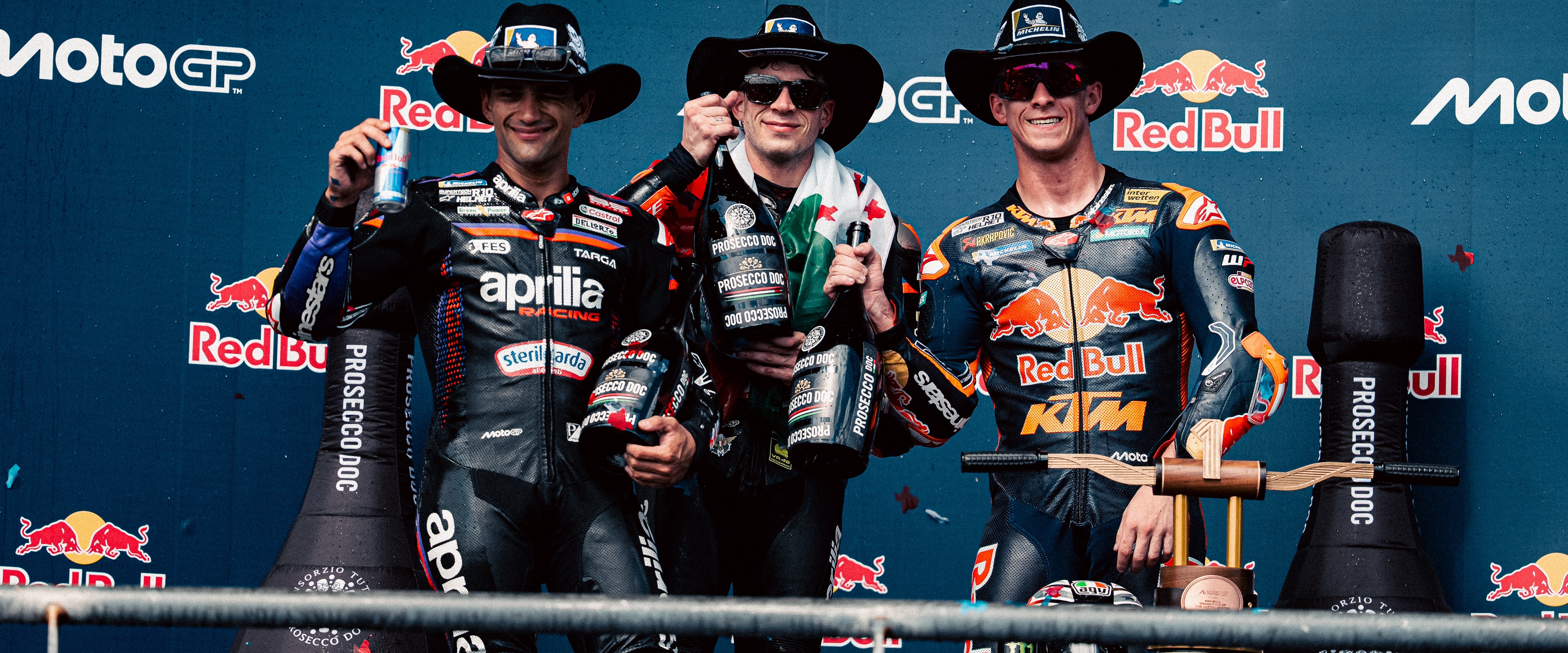 This is Aprilia Racing’s eleventh victory in the top class – their second in Austin after Maverick Viñales’ win in 2024 – and their fifth consecutive. The manufacturer from Noale has now also taken their third one-two in the top class and, for the first time in their history, two one-two finishes in a row. With today’s victory, Aprilia Racing now has 305 wins in World Grand Prix Motorcycle Racing.